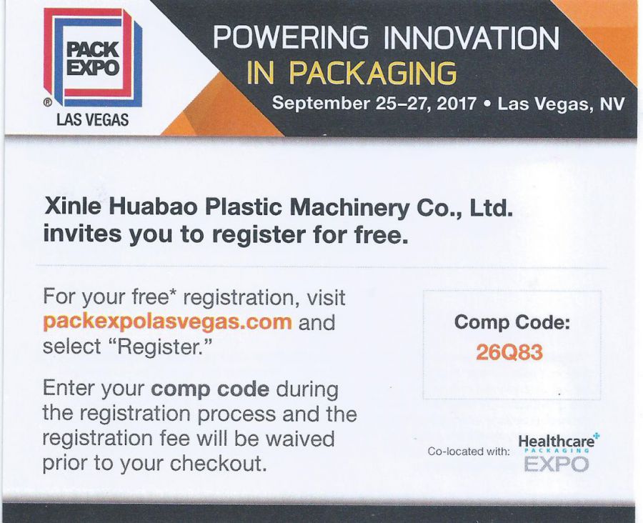 我司將于2017年九月份參加美國拉斯維加斯國際包裝展,歡迎國內(nèi)外的新老客戶前來洽談合作。詳細信息如下:
